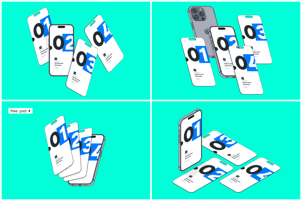Multiscreen iPhone 15 Pro Mockups (PSD + Figma)