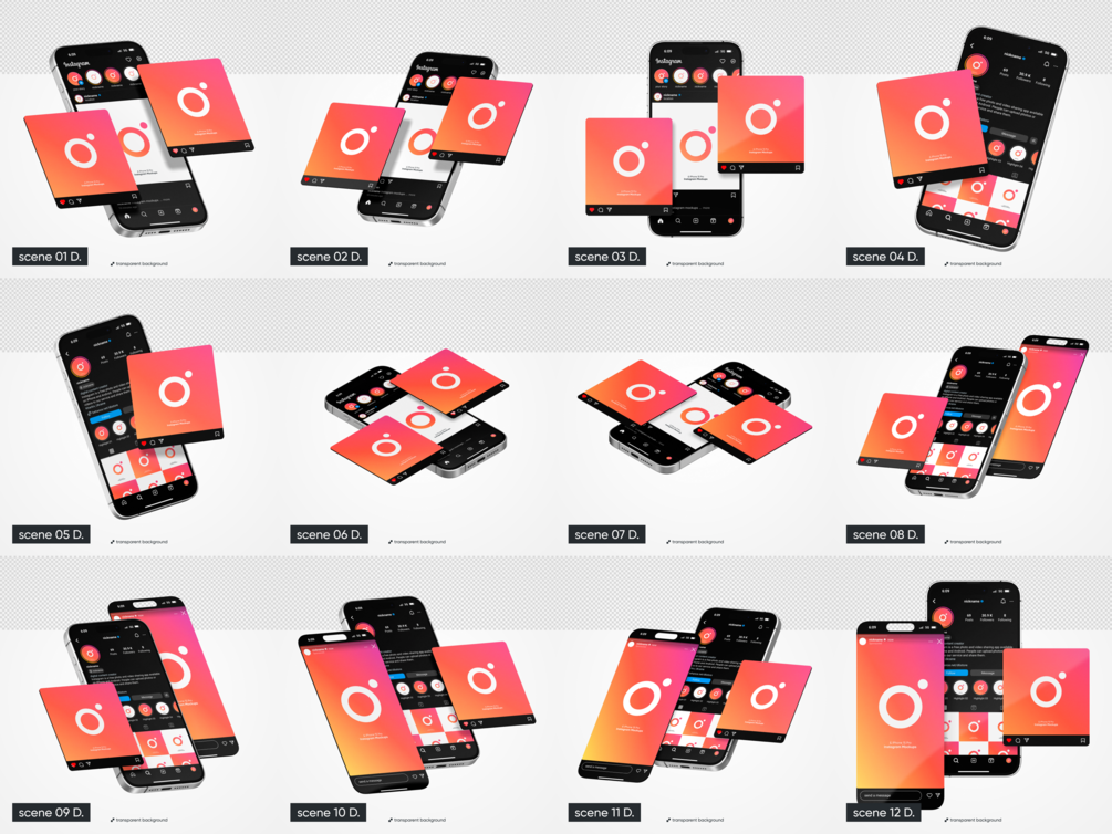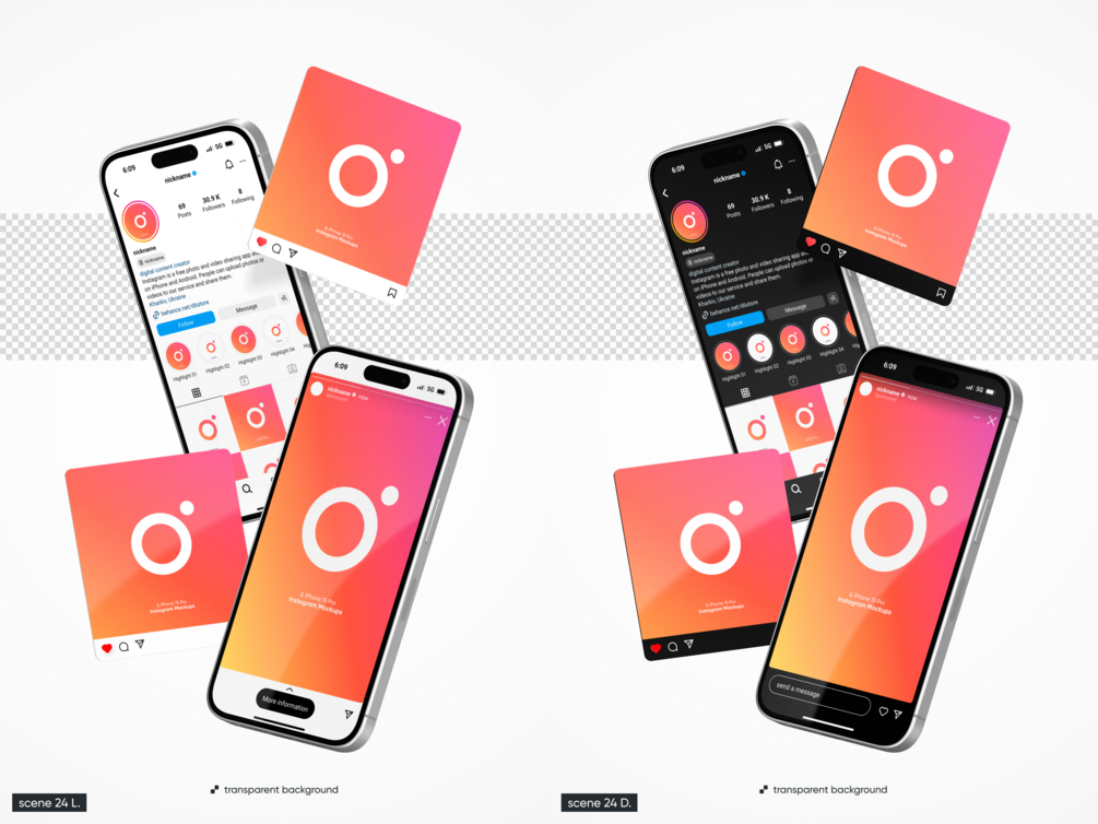 24 unique scenes in two themes, including 3 free ones for those who are unsure about purchasing the full set and want to try our product. Each scene is available in PSD format. The three key Instagram pages - Feed, Profile, and Stories - are also in PSD format. Customizable light shading and background. Give your content a professional look with our versatile set!