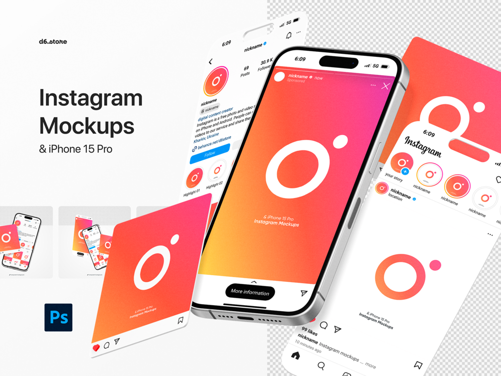 Instagram Mockup Kit with iPhone 15 Pro vol.2